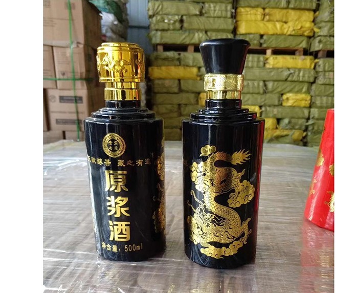 蒙砂酒瓶是在制品玻璃上,粘附一定大小面積的玻璃色釉粉,玻璃瓶廠經(jīng)過580~600℃的高溫烘烤,使玻璃色釉涂層凝結(jié)在玻璃外表,并顯現(xiàn)出具有與玻璃主體不同顏色的一種裝飾辦法。粘附玻璃色釉粉,可用排筆涂刷,亦可用膠輥滾涂。經(jīng)過絲印加工,能夠得到蒙砂面的樓空?qǐng)D案。 其辦法是:在玻璃制品外表上,絲印一層由阻熔劑構(gòu)成的圖案紋樣。